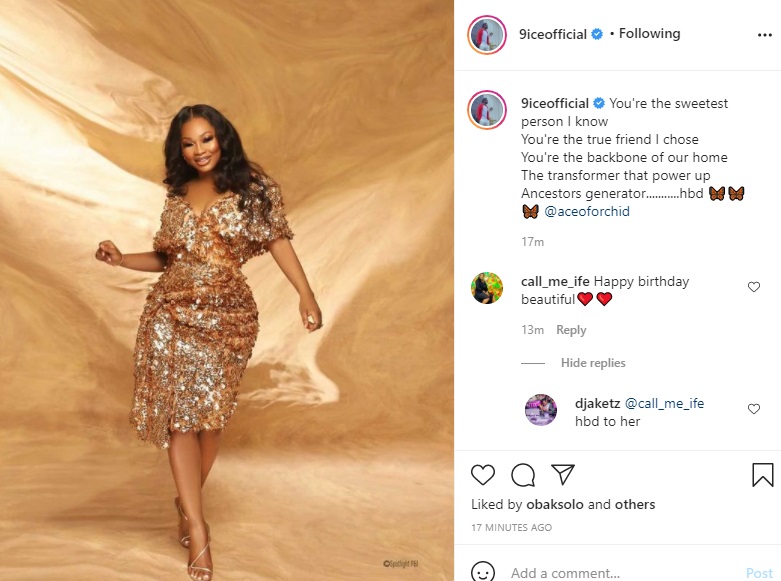 Nigerian Singer 9ice has sent a lovely and romantic message to his wife on her birthday.